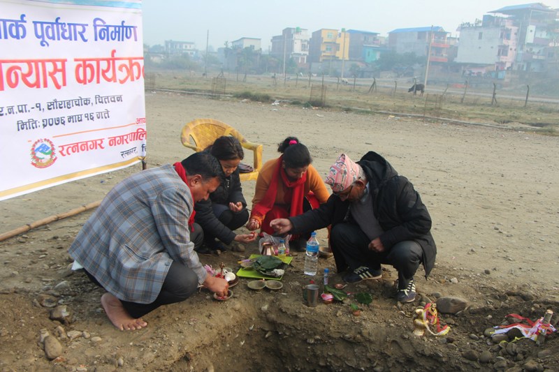 चितवन- पूर्वी चितवनको रत्ननगर १ स्थित सौराहाचोकमा रहेको बसपार्कमा पूर्वाधार निर्माणका लागि बिहीबार शिलान्यास गरिएको छ ।