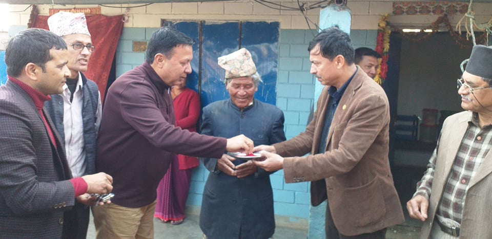 ३० वर्षदेखि यहाँ बस्दै आएका चार परिवारलाई नगरपालिका र वडा कार्यालयले सामूहिक आवास निर्माण गरिदिएको हो । ३० वर्षदेखि भोगचलन गर्दै आएको जग्गामा पक्की घर बनाएर शुक्रबार मेयर नारायण वनले हस्तान्तरण गरेका हुन् ।