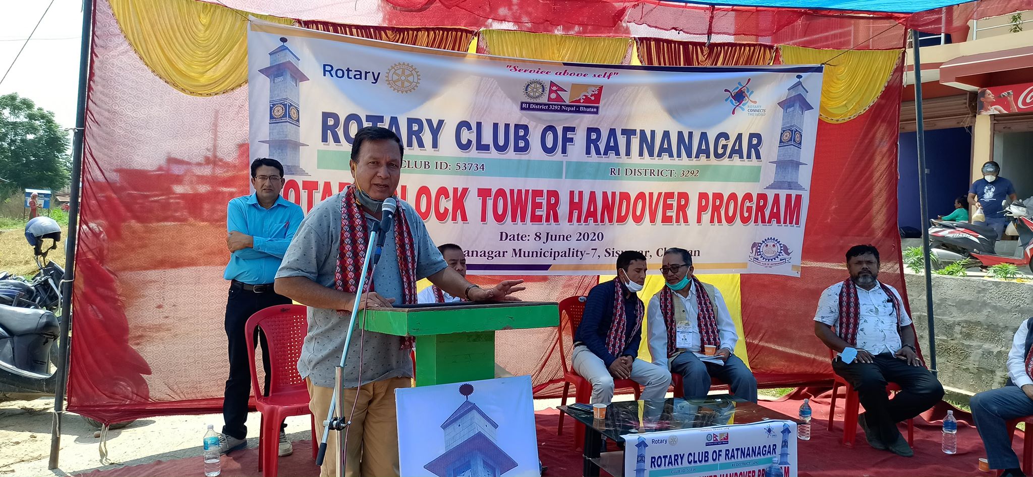 क्लबको उद्धघाटनमा भच्र्युयल माध्यमबाट उपस्थित रहेका रोटरी अन्र्तराष्ट्रिय डिस्ट्रिक ३२९२ का डि.जी. किरण लाल श्रेष्ठले प्रयास गरे सिखरमा पुगिन्छ भन्ने कुरालाई आत्मसाथ गर्दै रत्ननगर क्लब अफ रत्ननगरले गरेको सो कार्यको मुक्तकण्ठले प्रशंसा गरे । उनले सो क्लब टावर नेपालको पहिलो रोटरी क्लक टावर भएको र यस पछि बांकी २ वटा क्लक टावर हस्तान्तरण हुने प्रक्रियामा रहेको जानकारी दिए । उनले कोरोना भाईरसको रोकथामको लागि रोटरीले हालसम्म नेपालमा करिब १५ करोड सहयोग गरिसकेको पनि जानकारी दिए ।