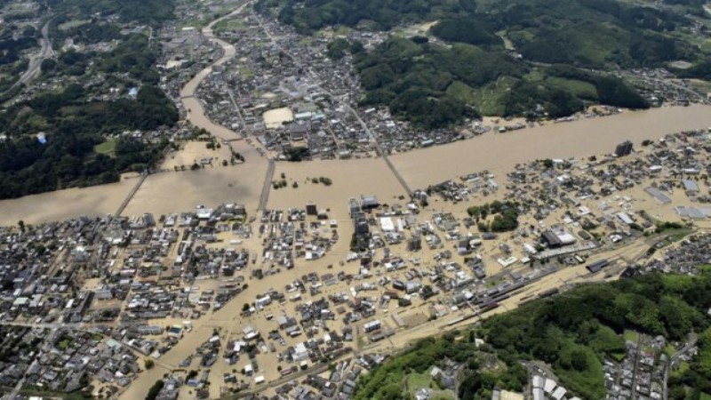 रातभरीको बर्षाका कारण जापानको दक्षिणी क्षेत्रका झण्डै ७५ हजार मानिस बसोबास गर्दै आएको कुमामोटो र कागोशिमा डुबानमा परेर पोखरी जस्तो भएका छन् । डुवानमा परेकाहरुलाई अन्यत्र व्यवस्थापन गर्नुपर्ने अवस्था रहेको जनाइएको छ ।