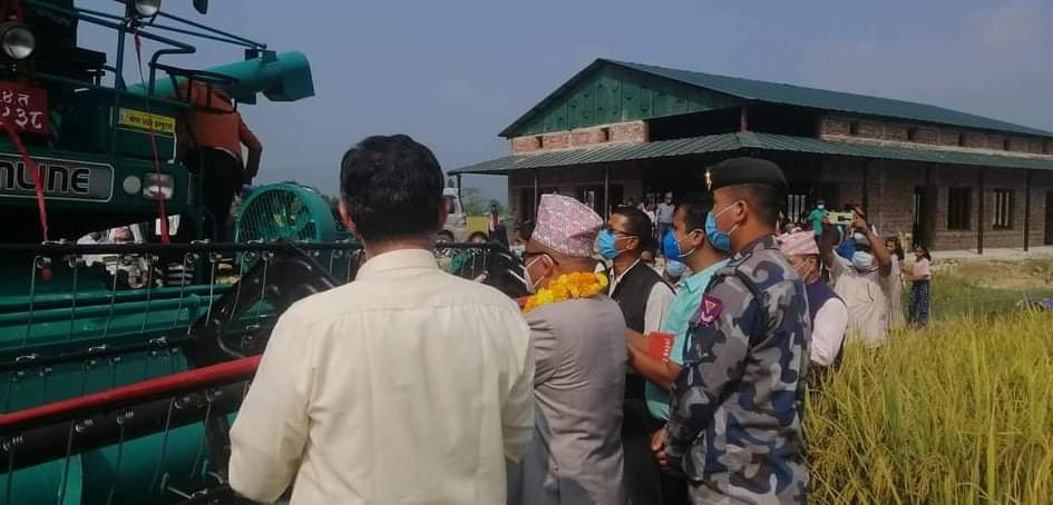 माडी नगरपालिका ८ स्थित कान्तिपुरमा सुर्यदय कृषि सहकारी संस्थाद्वारा संचालित सामुहिक खेतीको बुधबार कृषि मन्त्री दावा दोर्जे लामाद्वारा अबलोकन एबम धान काट्ने मेसिन कम्बाइन हार्मेस्टरको उद्धघाटन गरिएको छ । सो उदघाटन कार्यक्रममा प्रमुख अतिथिको रूपमा कृषि मन्त्री दावा दोर्जे लामा रहेका थिए ।