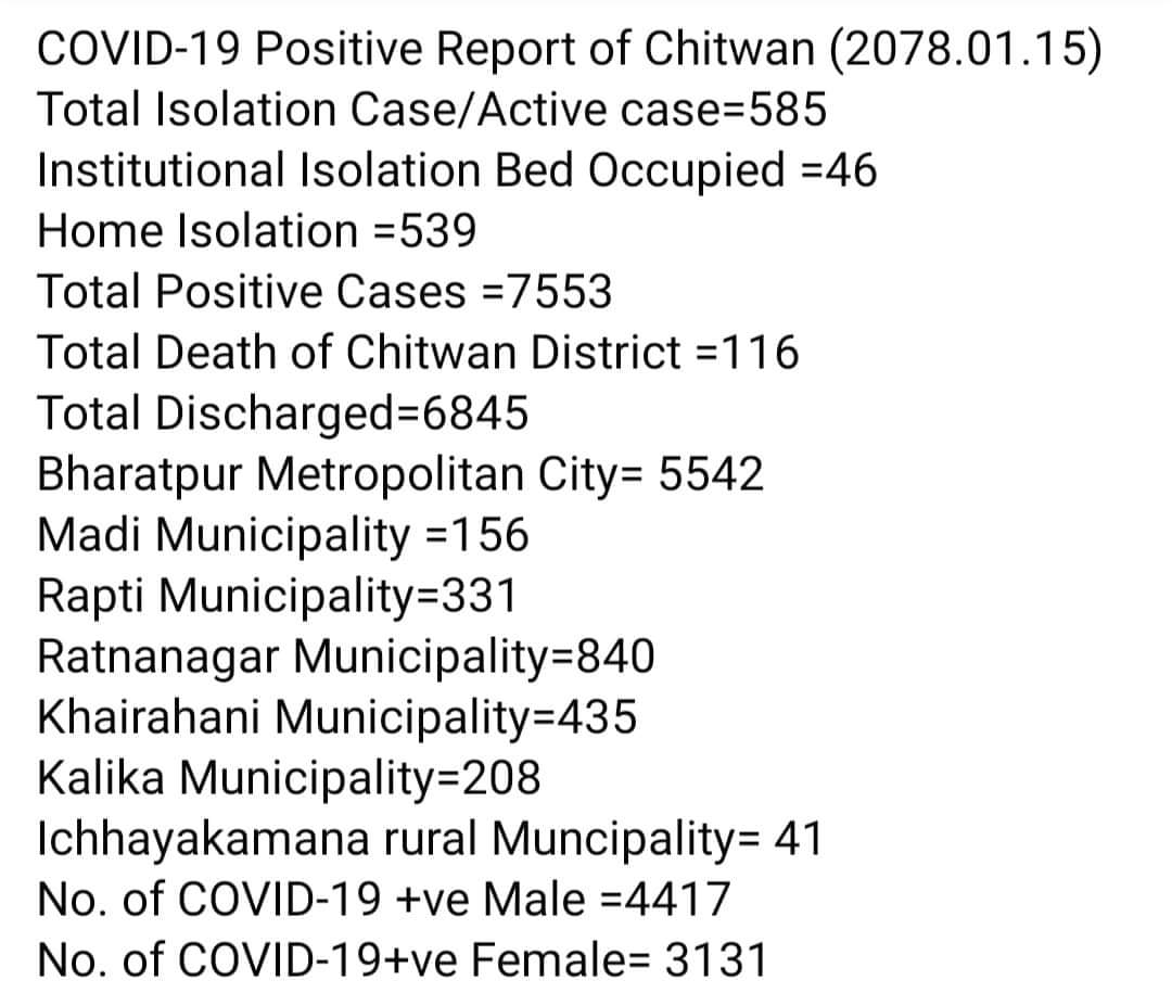चितवनमा काेभिडकाे अवस्था यस्तो रहेकाे छ: