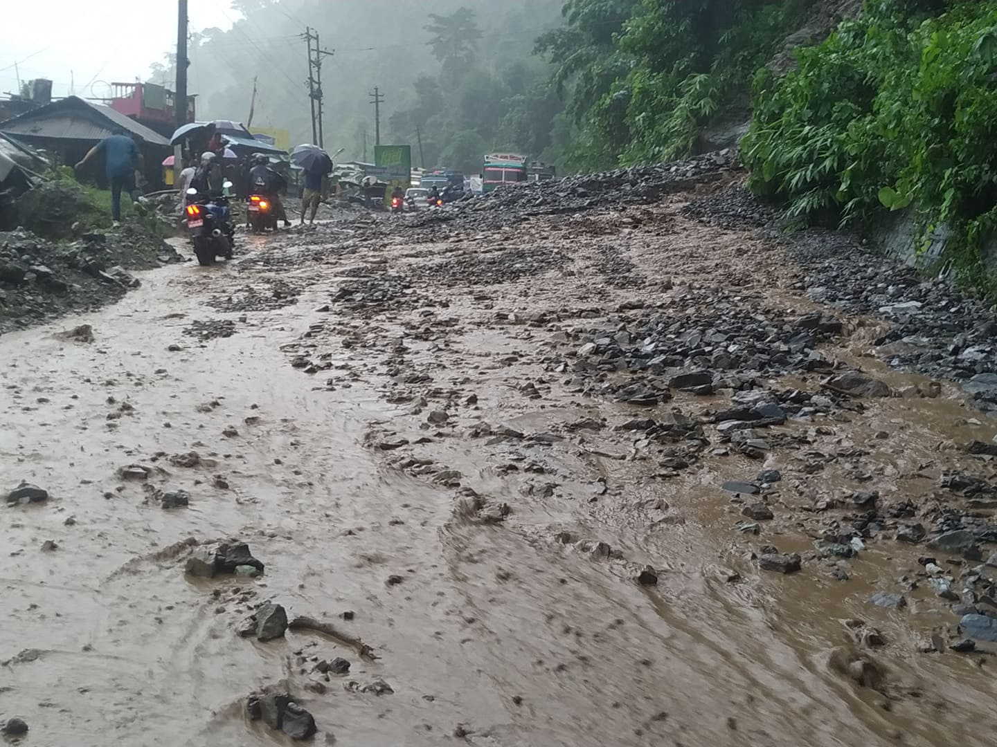 आज (शुक्रबार) बिहान परेको पानीका कारण मुग्लिन नारायण सडक खण्डको पाँच किलोको दुई ठाँउमा पहिरो गएको छ भने मुग्लीन र कुरिनटारको बिचमा रहेको घोप्टे भिरमा पनि पहिरो गएको जिल्ला ट्राफिक प्रहरी कार्यालय चितवनका प्रमुख भगवान राज थापाले जानकारी दिए ।