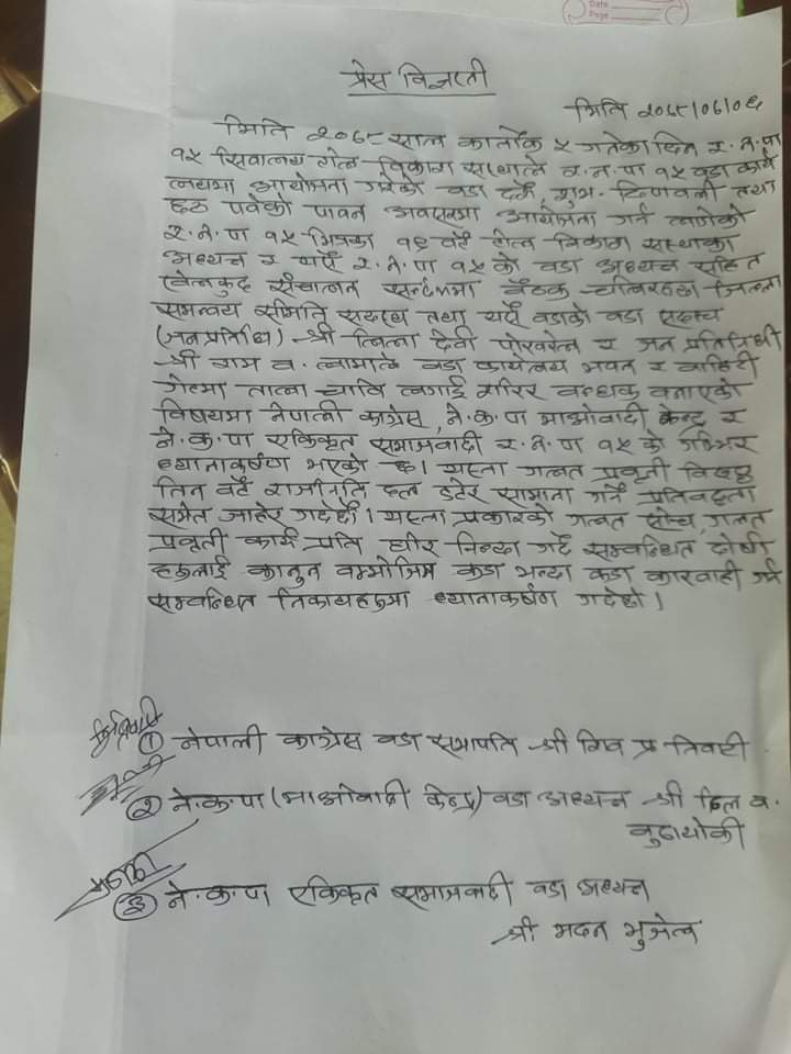 प्रेस विज्ञप्ती यस्ताे रहेकाे छ ।