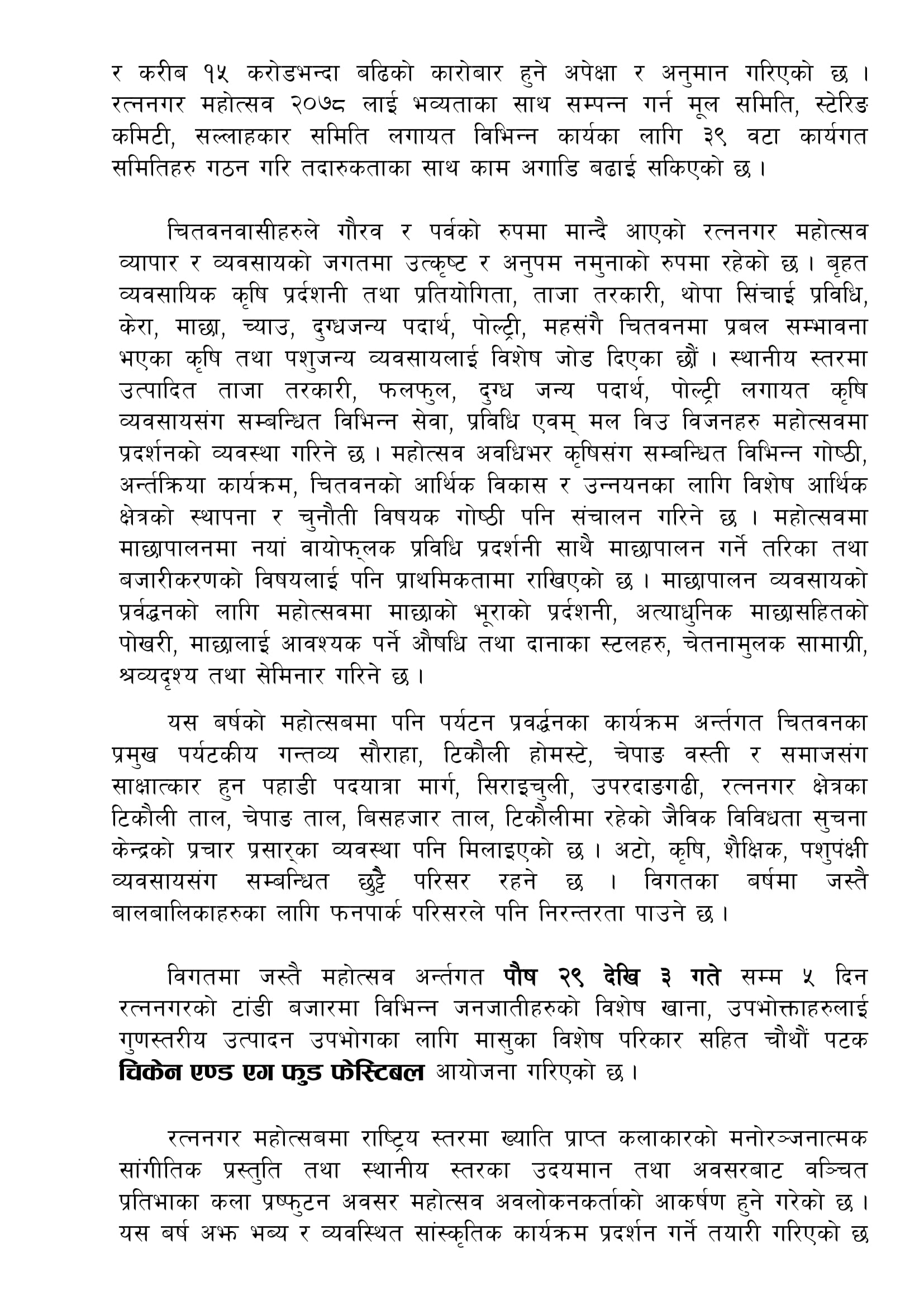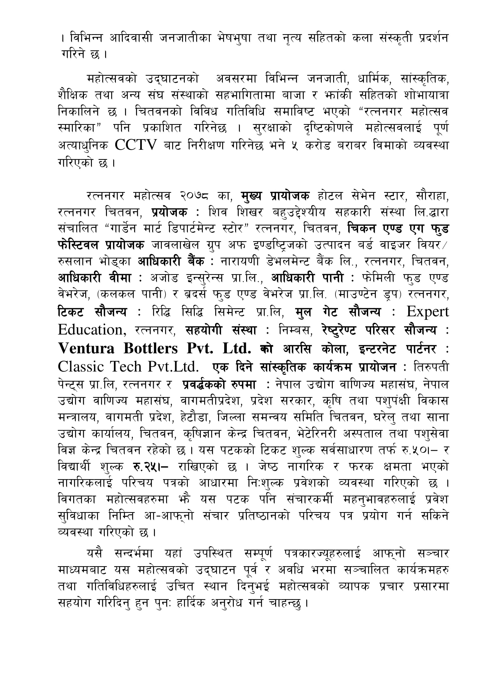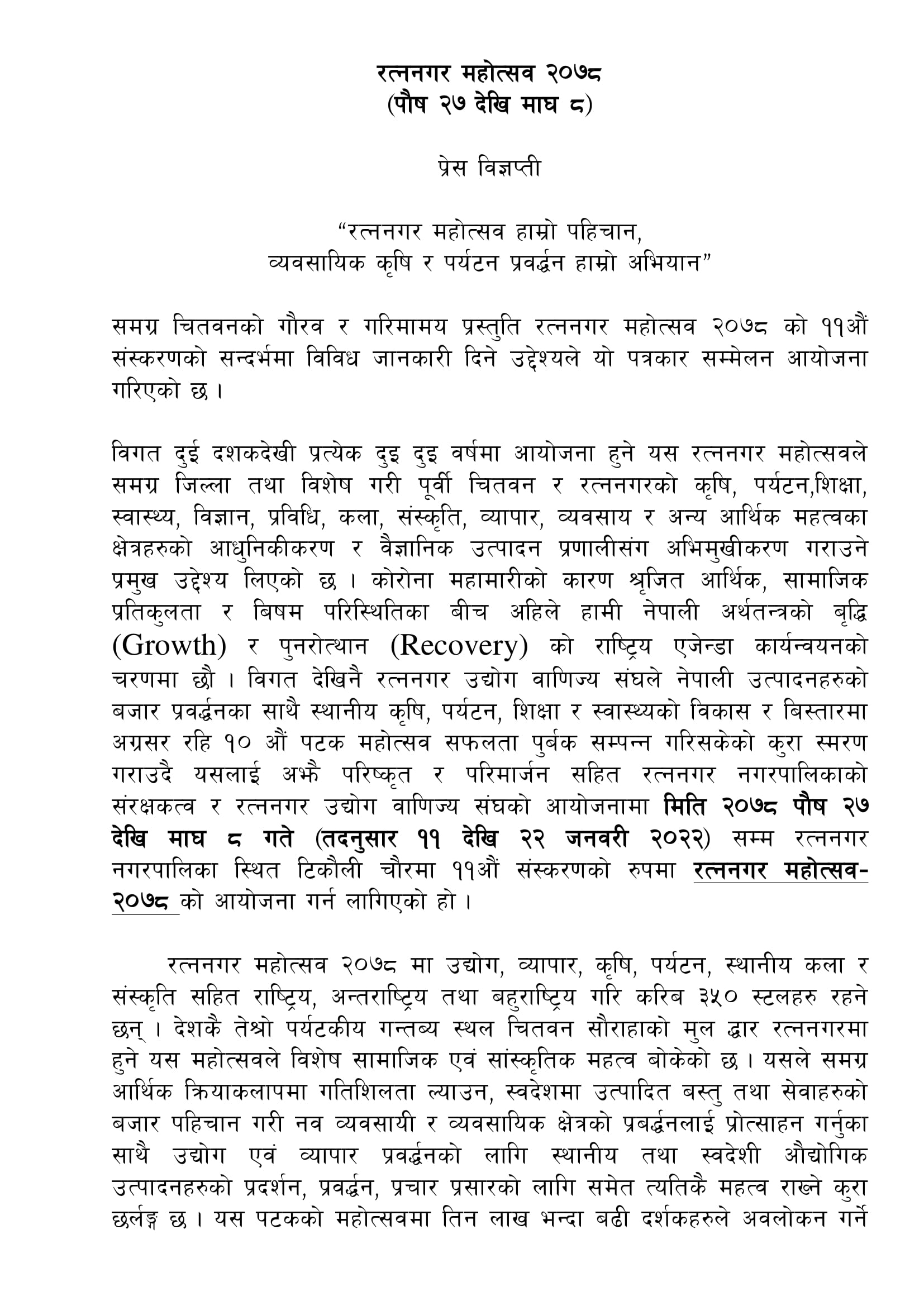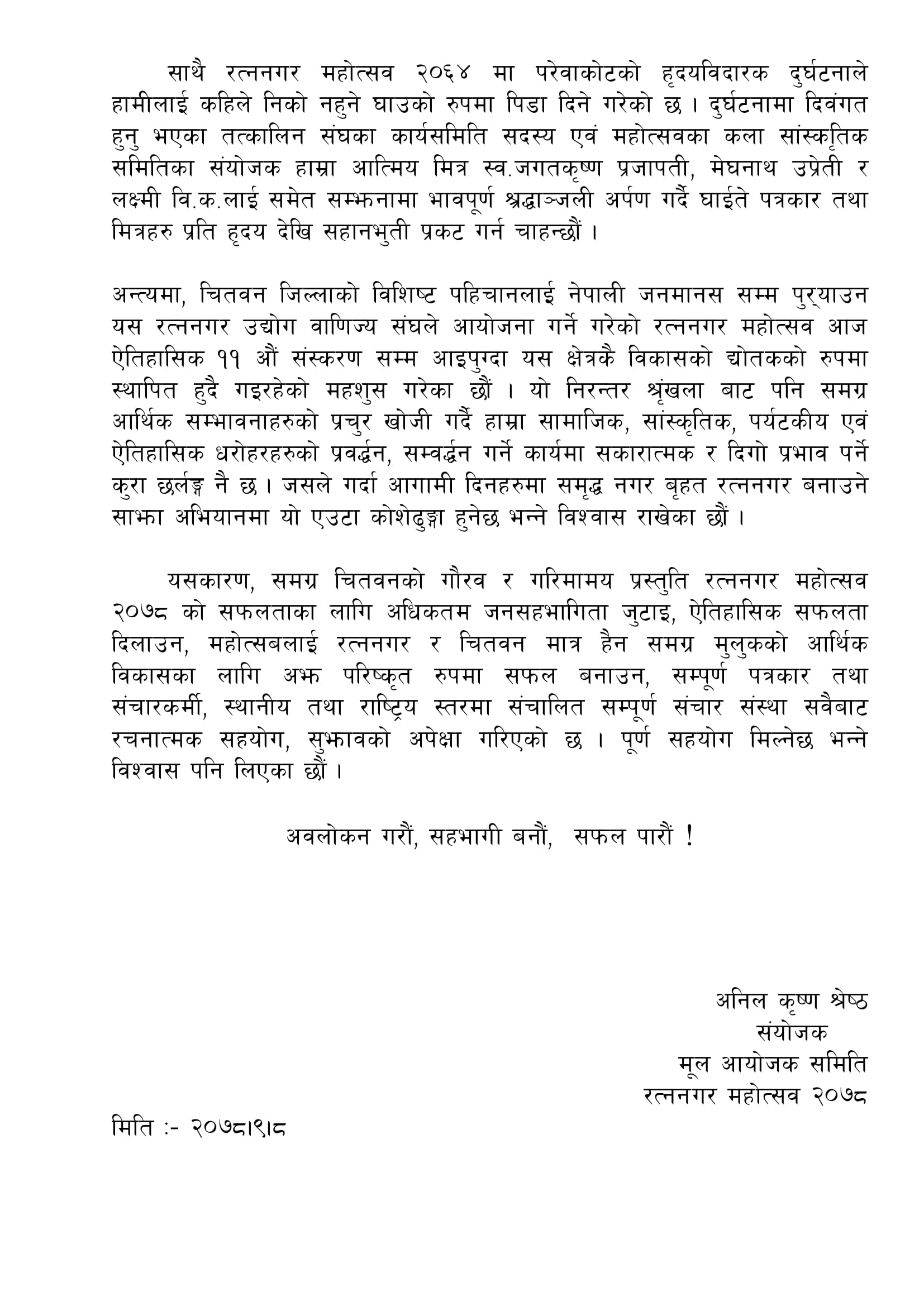 रत्ननगर महोत्सबमा संघको तर्फबाट जारी गरिएको बिज्ञप्ति यस्तो रहेको छ ।