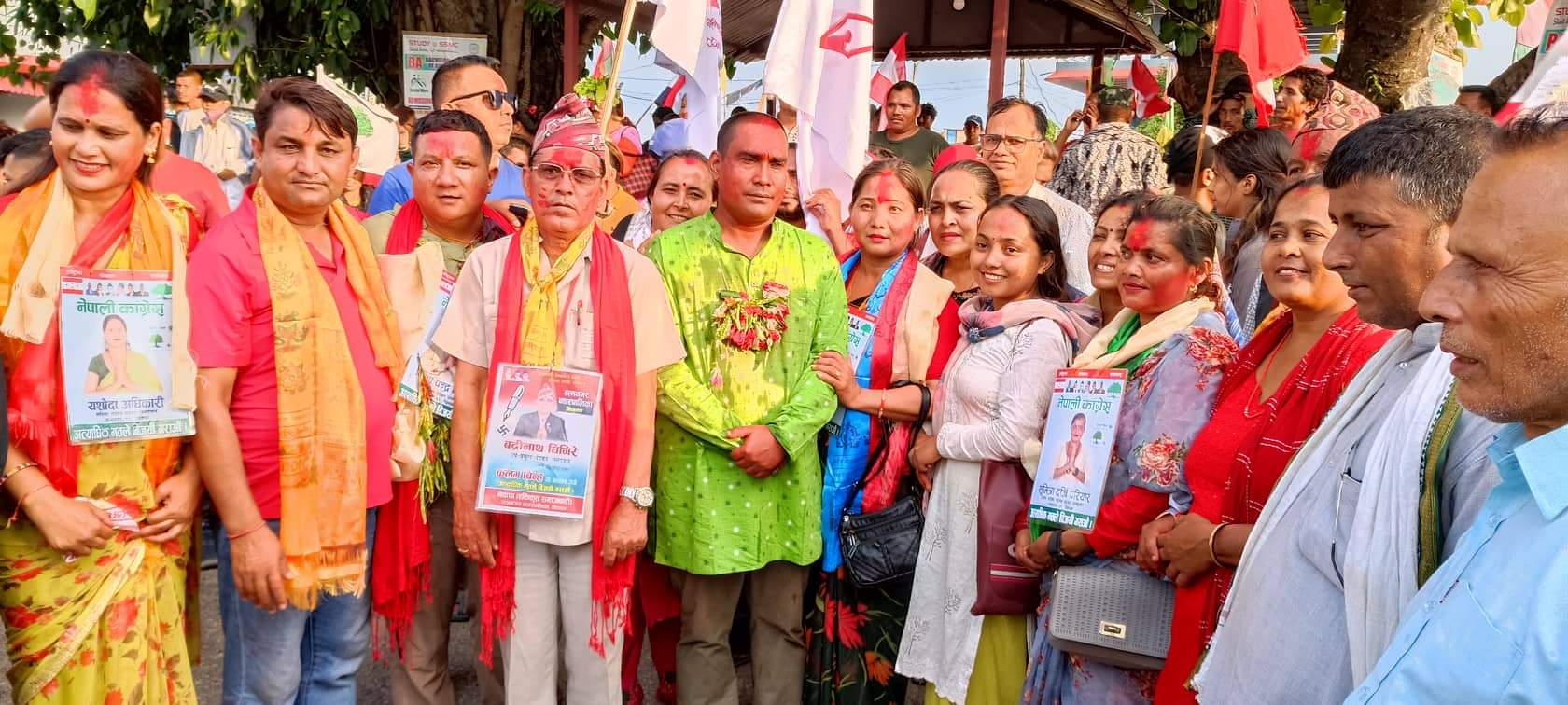 नेपाली कांग्रेसको तर्फबाट मेयर पदका उमेदवार प्रह्लाद सापकोटा र नेकपा (एकीकृत समाजवादी)को तर्फबाट उपमेयर पदका उमेदवार बद्रिनाथ घिमिरेलगायत सयौँ नेता, कार्यकर्ताहरुले नगरवासीको घरदैलोमै पुगेर मत माग्नुका साथै नगरवासीको अपेक्षा पूरा गर्ने प्रतिबद्धता जनाएका हुन् ।