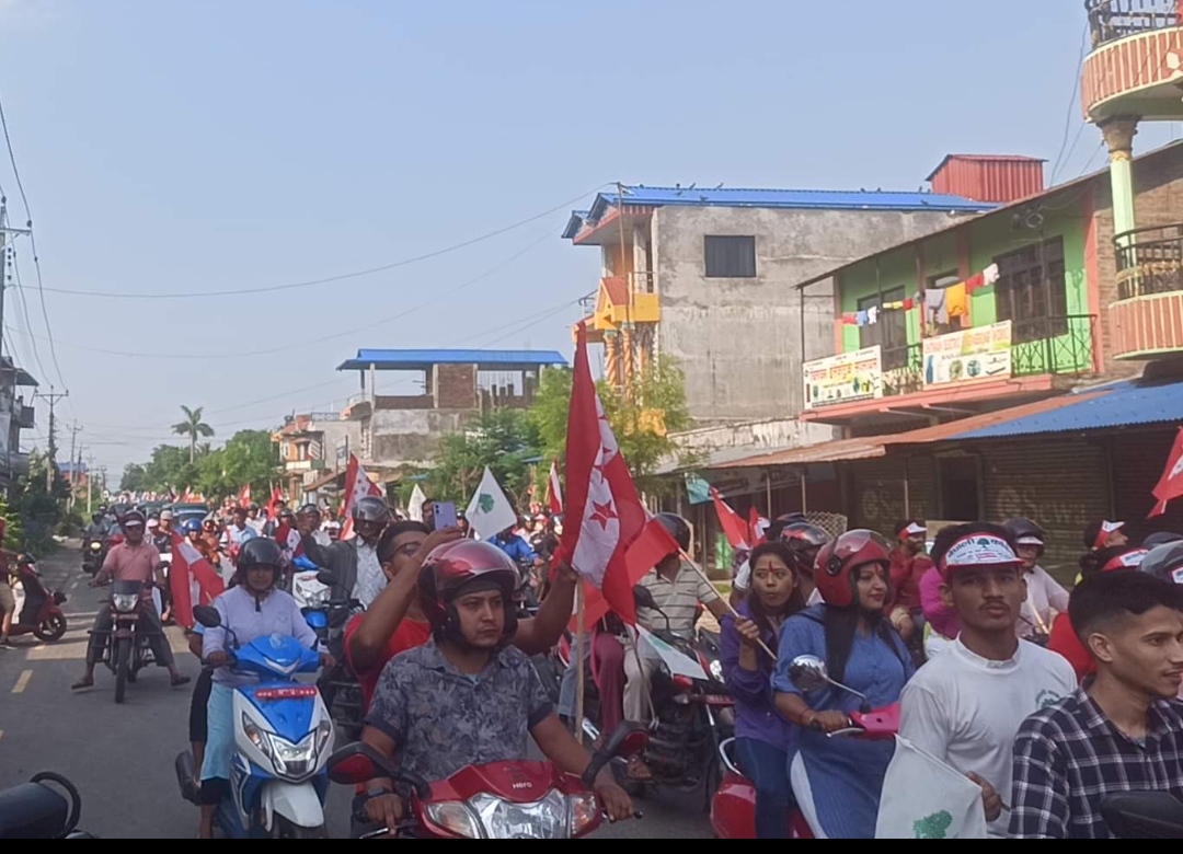 रत्ननगर । नेपाली कांग्रेससहित सत्ता गठबन्धनले रत्ननगर वडा नं १२ मा विशाल मोटर र्‍यालीसहित कोणसभा आयोजना गरेको छ ।